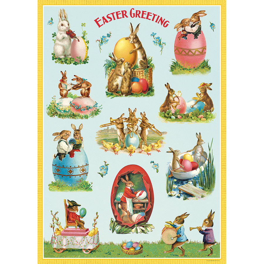 Inspired by vintage Easter advertisements, this print features a collection of Easter rabbits dressed in their Sunday best.
