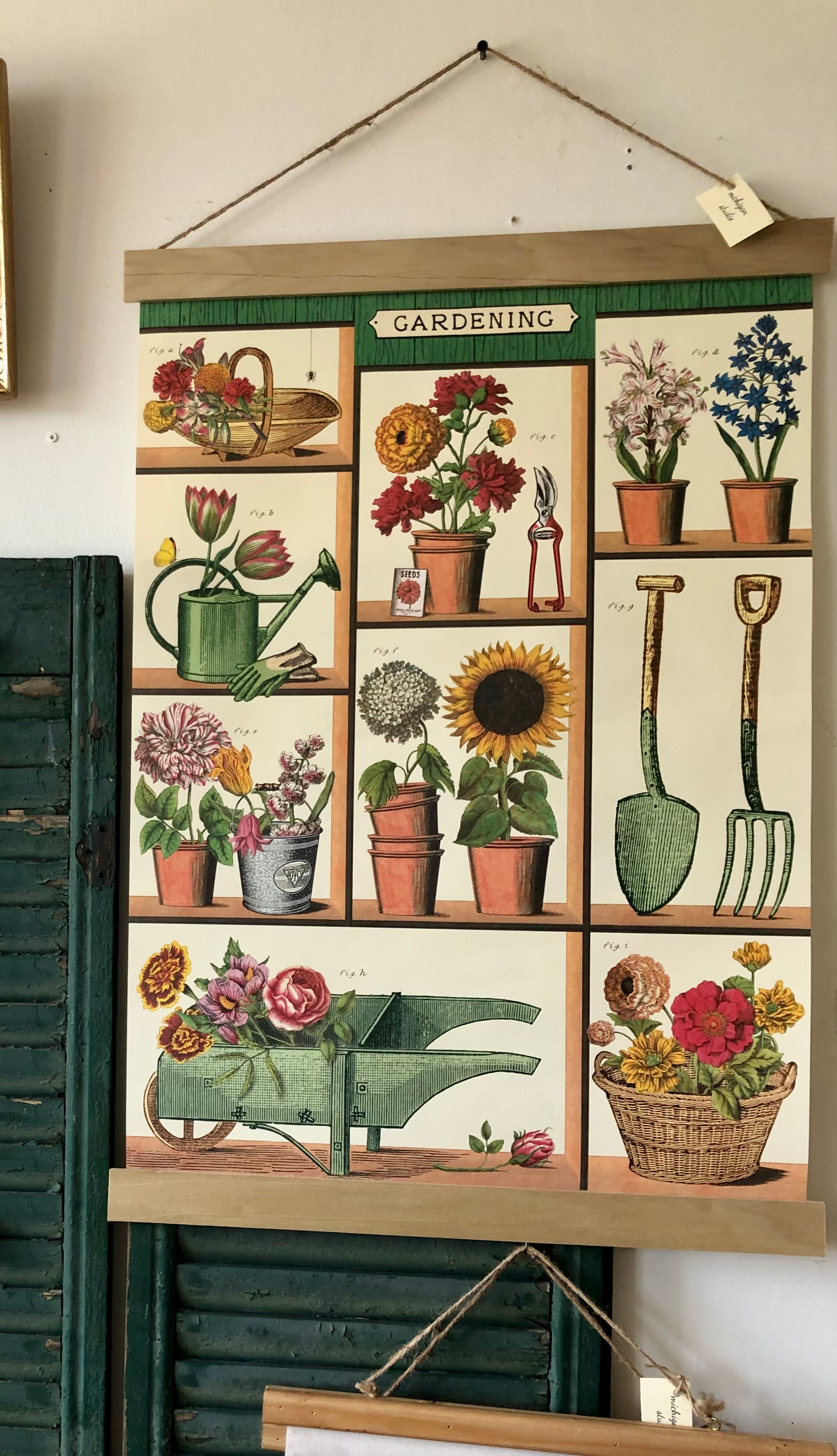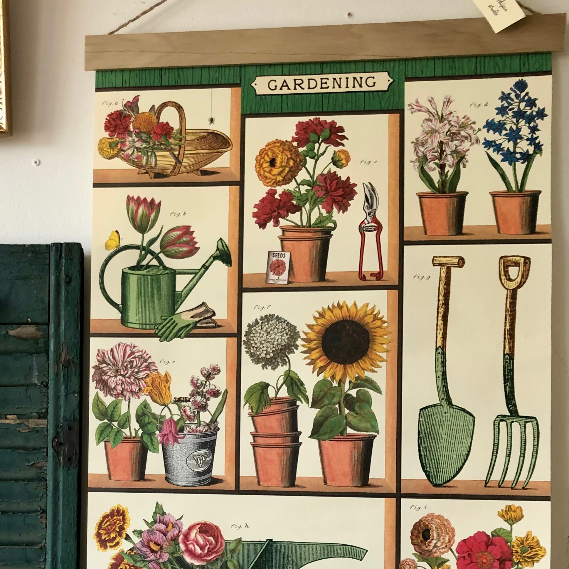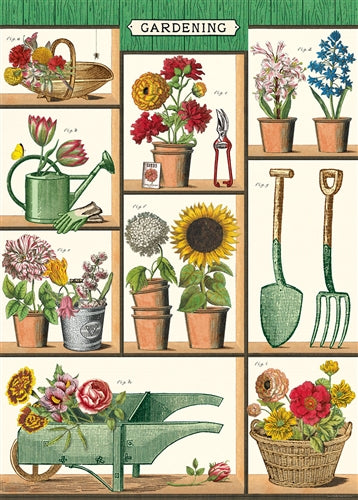 For gardening enthusiasts year round, the print features vibrant flower images and gardening tools.