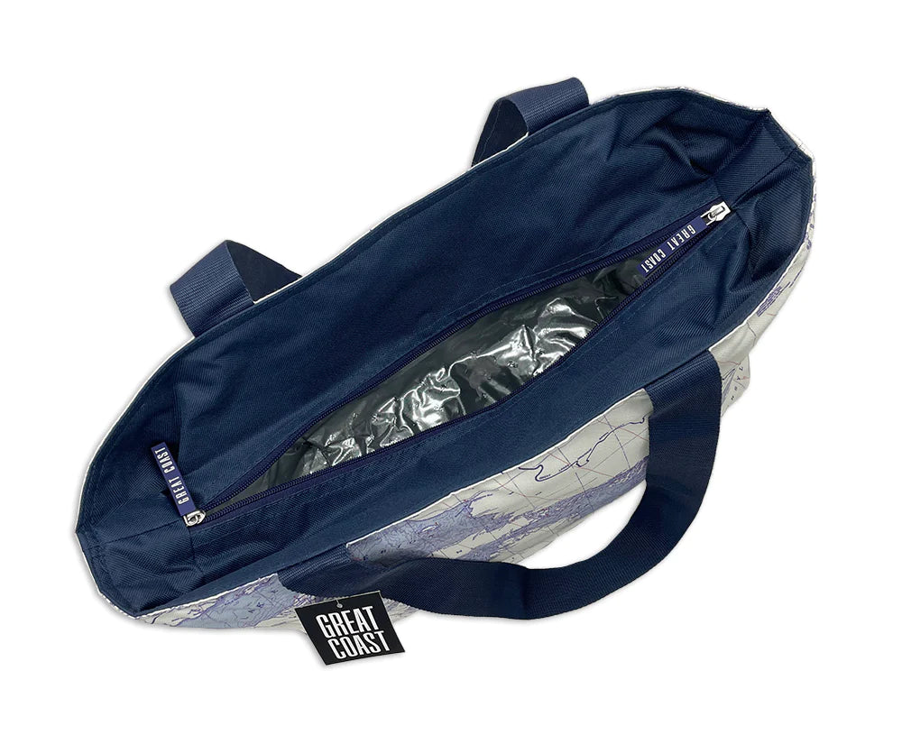 Perfect for any day at the beach, this beach bag pulls double duty as a cooler bag to keep your drinks and food cold! Printed with the majestic Great Lakes on both sides, double straps and zippered top. Foil liner that's easy to wipe clean and leak-resistant. Measures 18.50" x 13.50" x 6".