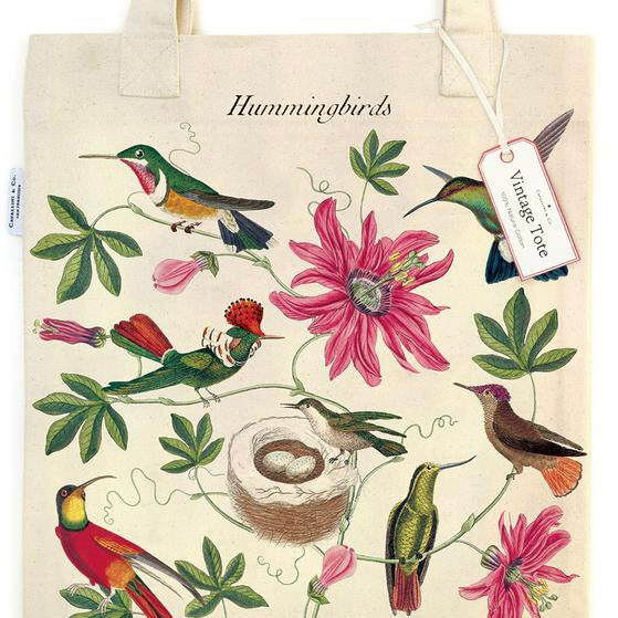 Vibrant flowers and hummingbirds adorn this lovely tote bag -- the perfect bag for all your shopping! Canvas material features print on one side.