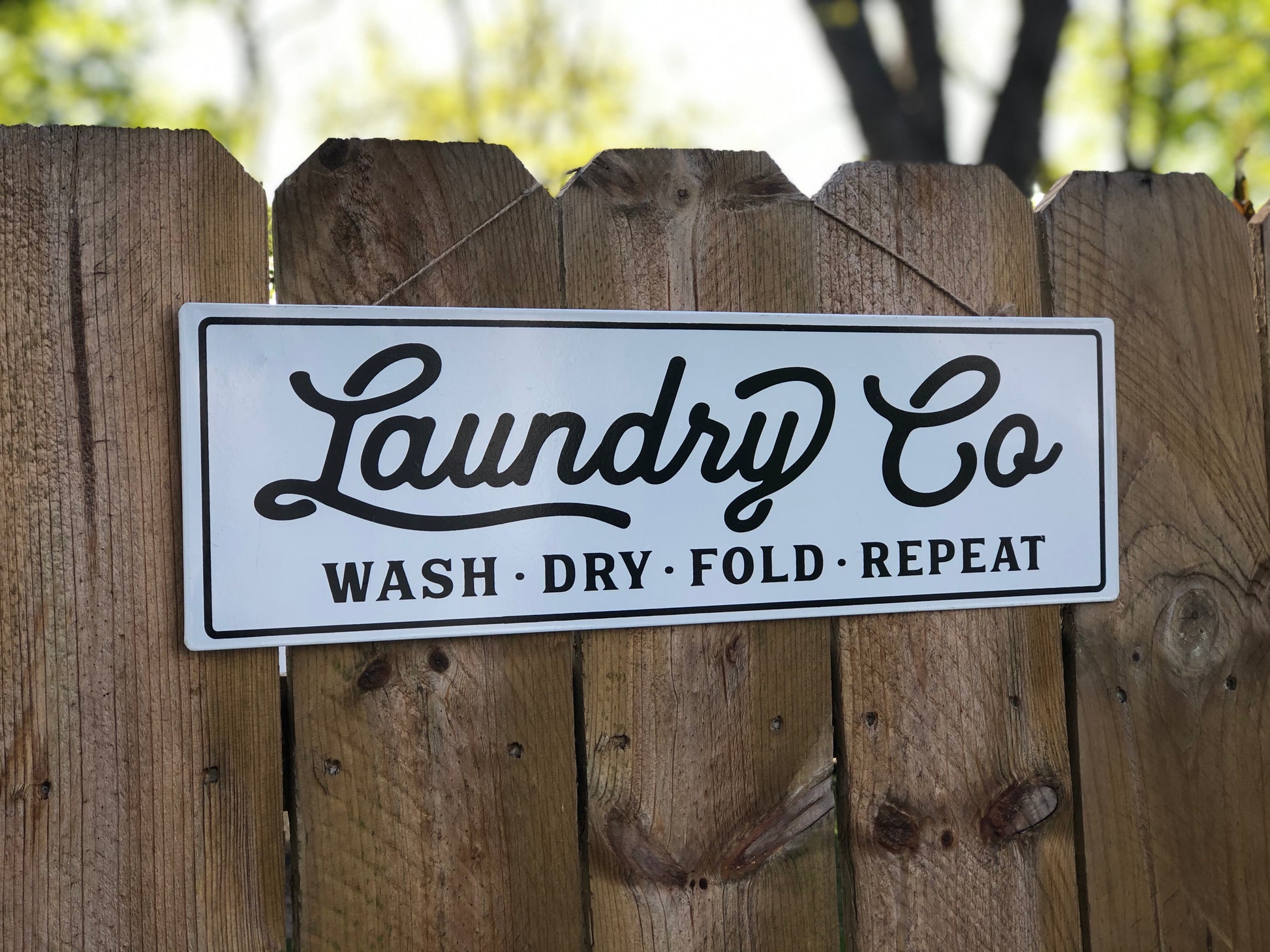 Every laundry room needs this farmhouse Laundry sign! Sawtooth hooks on back or hang with the optional jute hanger. Measures 20” wide x 6” tall.