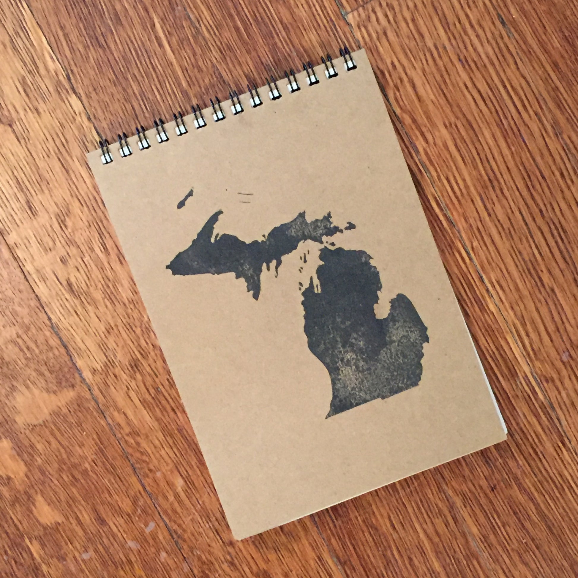 Perfect for everyday notes, reminders, or ideas, this Michigan notebook is stamped with a hand carved stamp of our great state! Measures 5" x 7" with 80 ruled sheets.