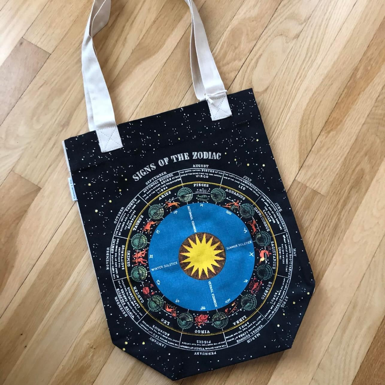 Adorned with signs of the Zodiac, this tote bag is a visual delight that will turn heads wherever you go.