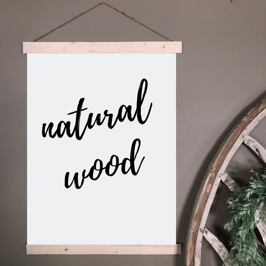 Poster measures 20” x 28”. With hanger measures 20" x 29" tall. Jute string adds an additional 5-6". Wood planks are attached permanently on the front side of posters and not on the back so staples will be visible on the back. Ships rolled and may experience some slight wrinkling which will disappear after hanging.