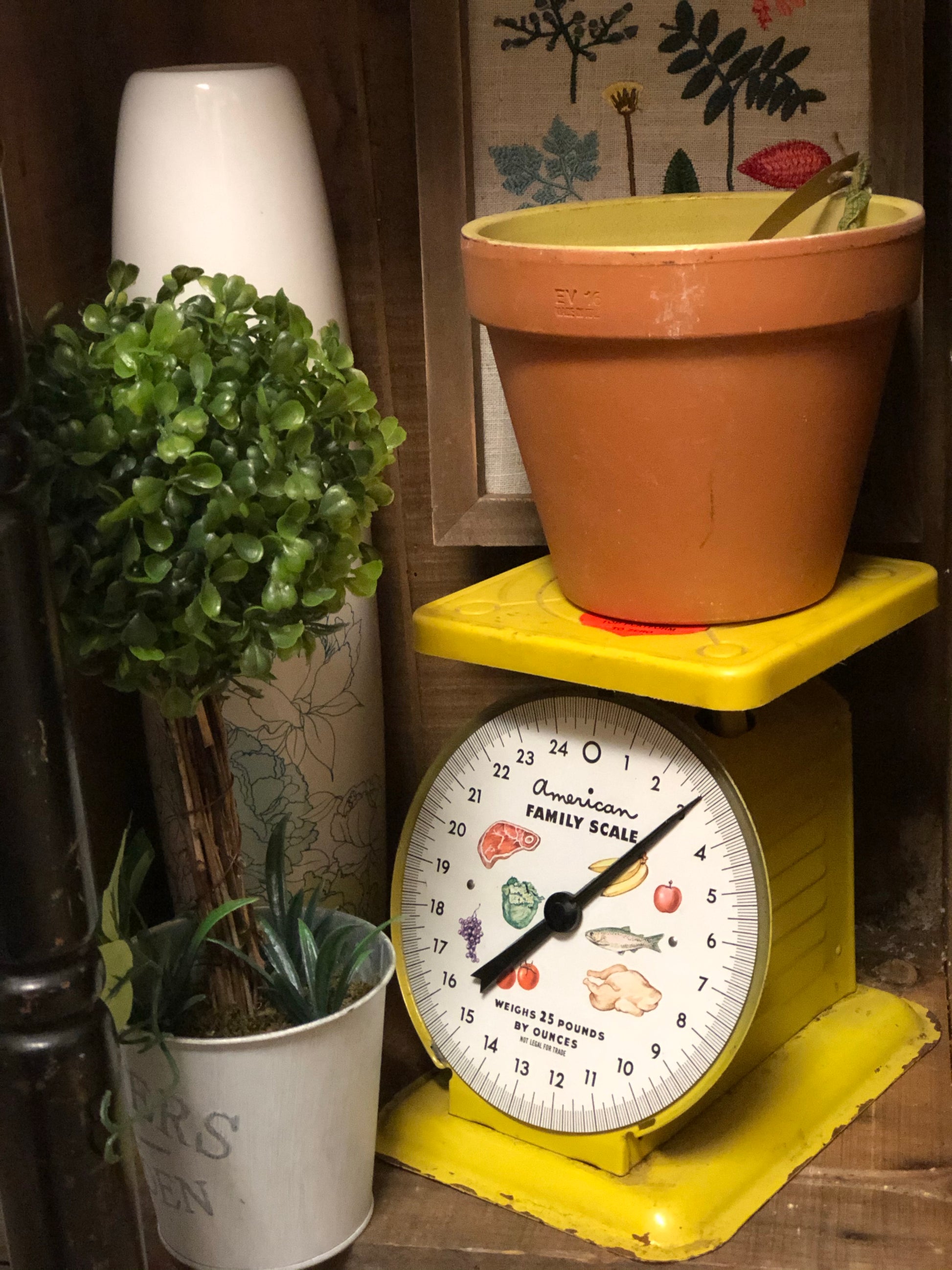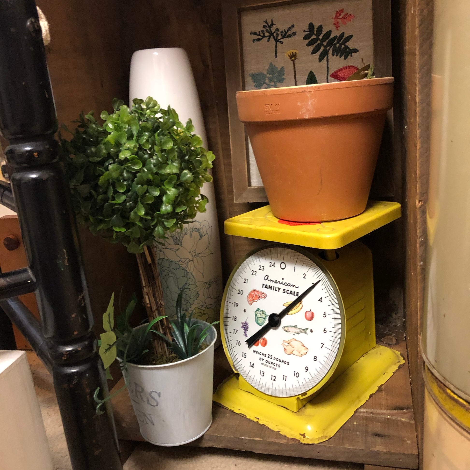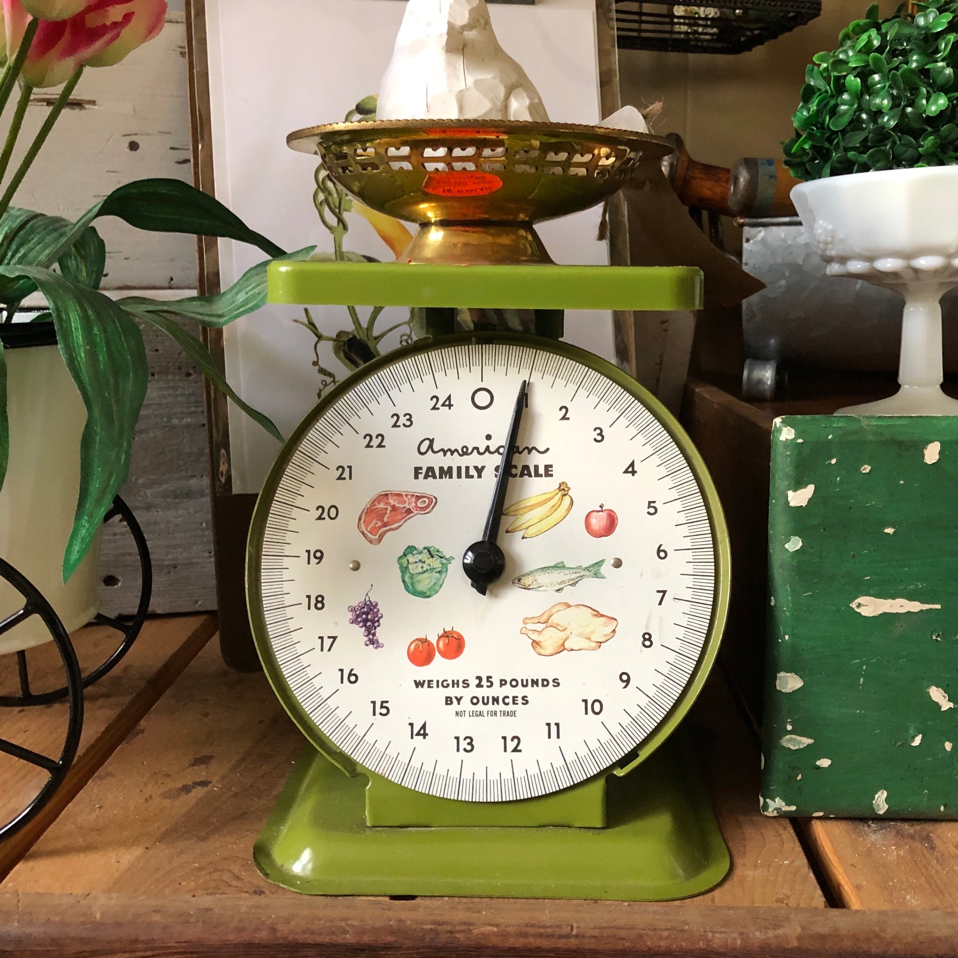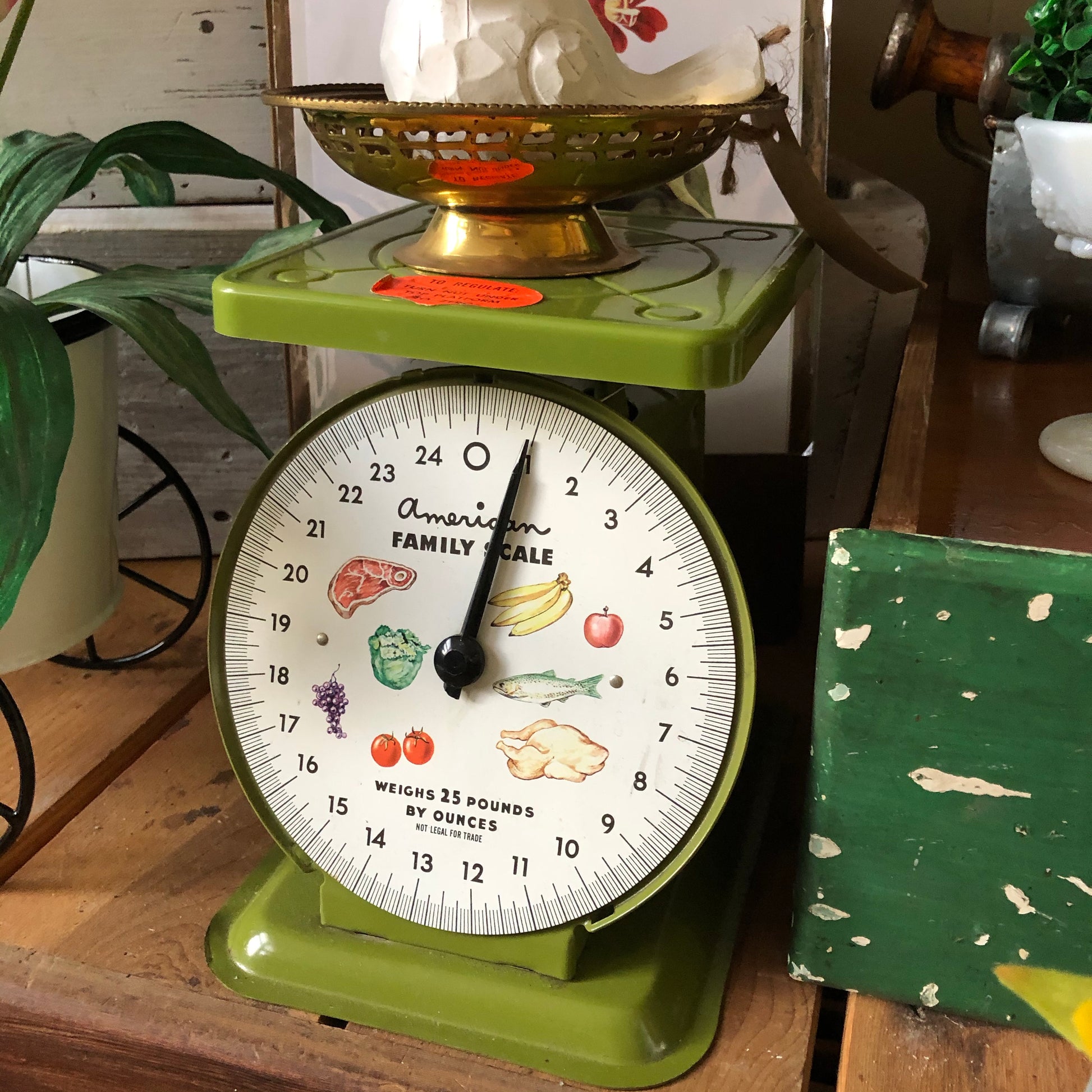 These scales are a blast from the past! Made by American Family Scale. Good condition but some rust spots on base; see photos. Please note we are unsure if this is calibrated correctly as our intention is to use as decor.
