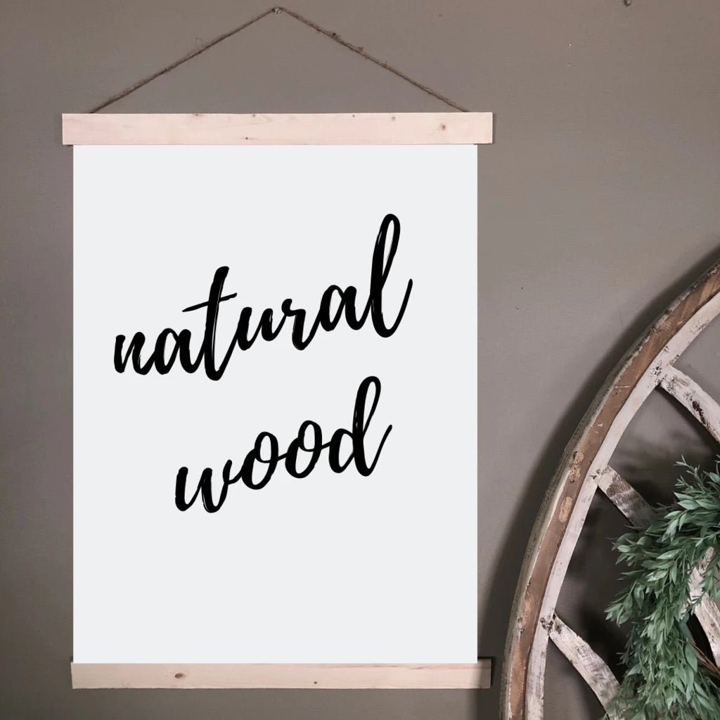 Purchase this print individually or upgrade to a permanent wood hanger — wood planks are attached to the top and bottom and finished with a jute string for easy hanging. Choose from a variety of hanger color options.